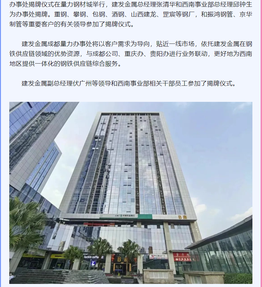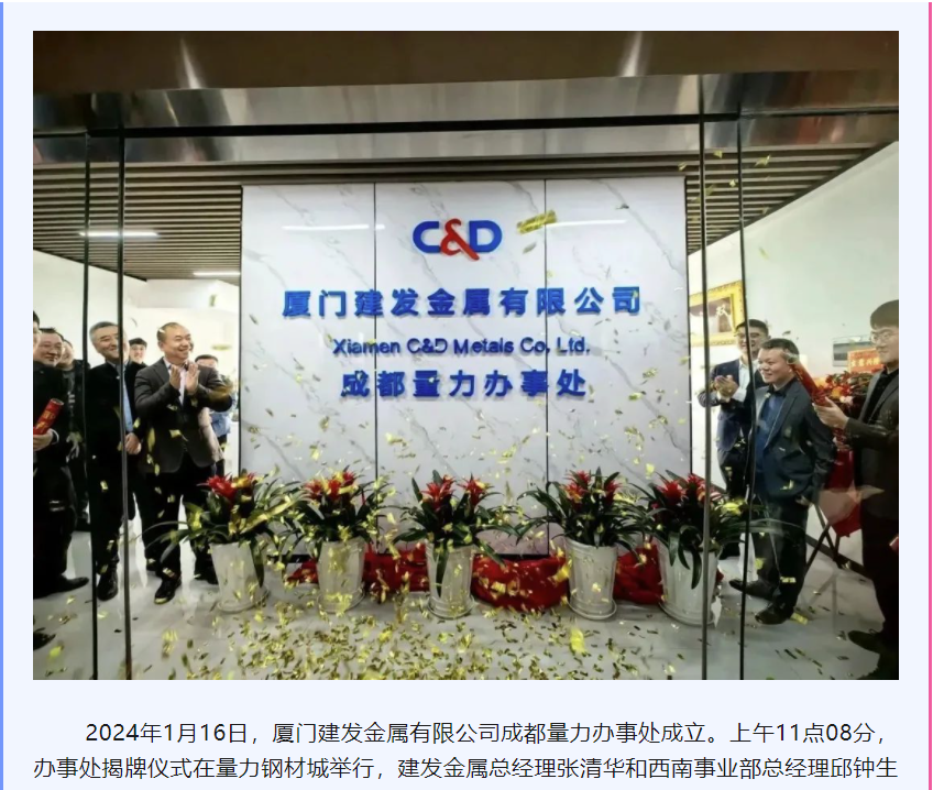 建發(fā)金屬成都量力辦事處成立,大西南再添新力!